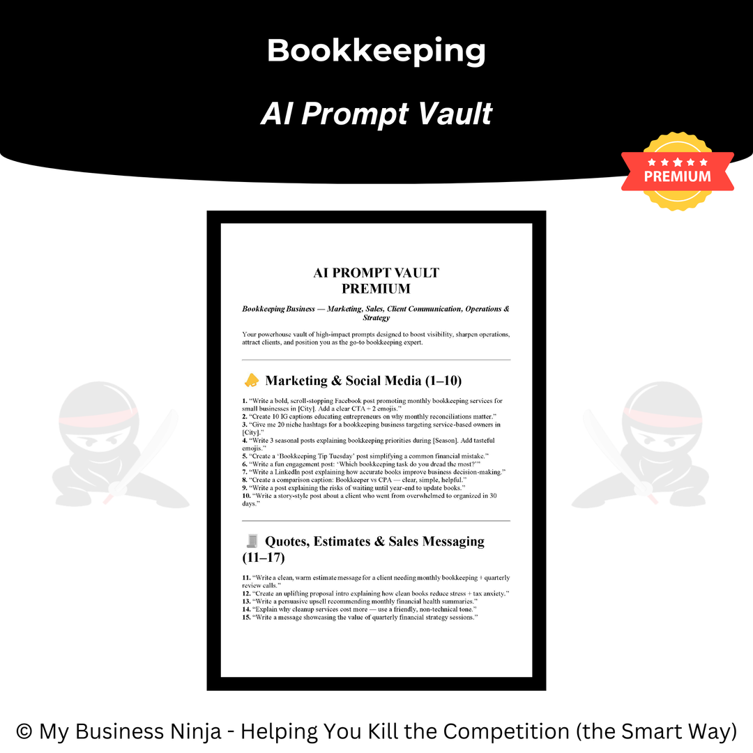 Whether you’re launching a new bookkeeping business or refining an existing practice, this toolkit provides the professional foundation and growth systems you need to compete, stand out, and grow the smart way. 🥷📊