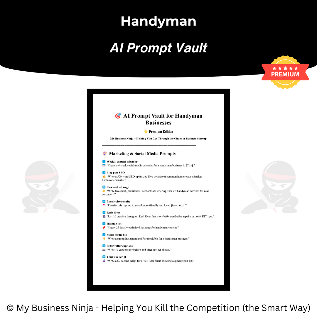In addition to core operational and marketing tools, this collection also includes advanced playbooks and guides focused on branding, local positioning, competitive differentiation, customer trust, sales confidence, and scalable business growth. Together, these resources help handyman businesses appear more established, earn trust faster, close more jobs, and scale smoothly — even in crowded service areas.