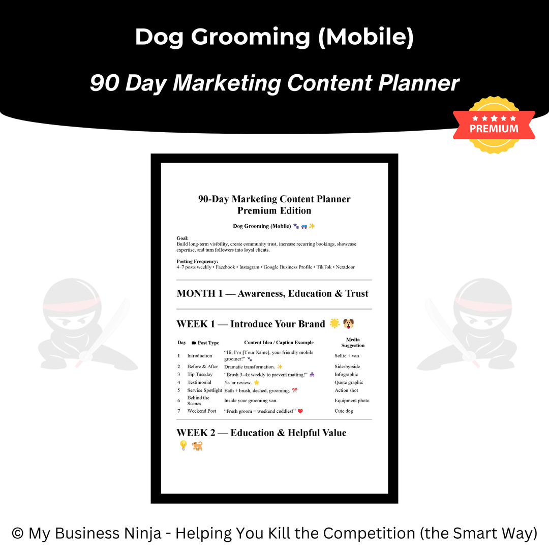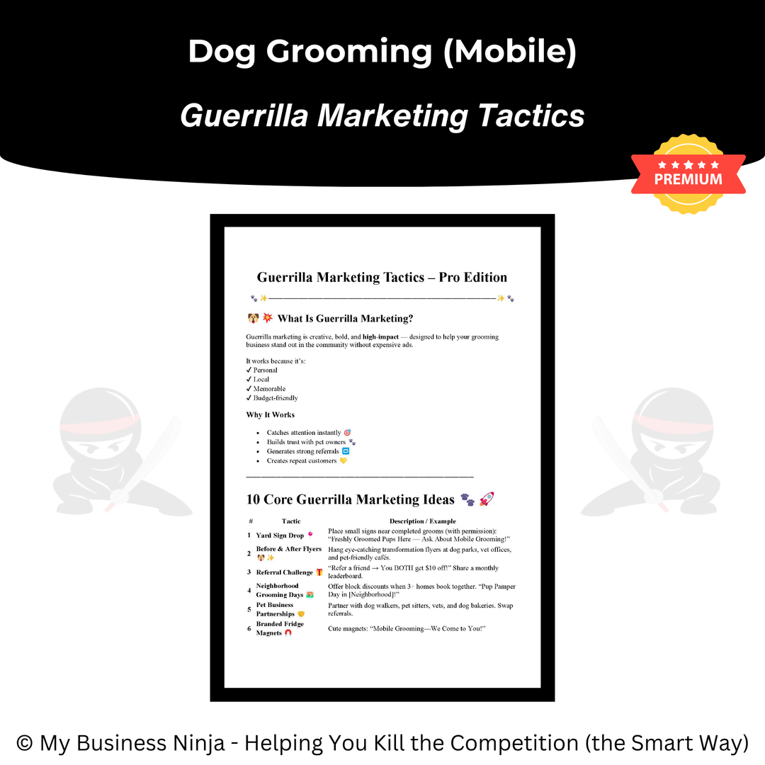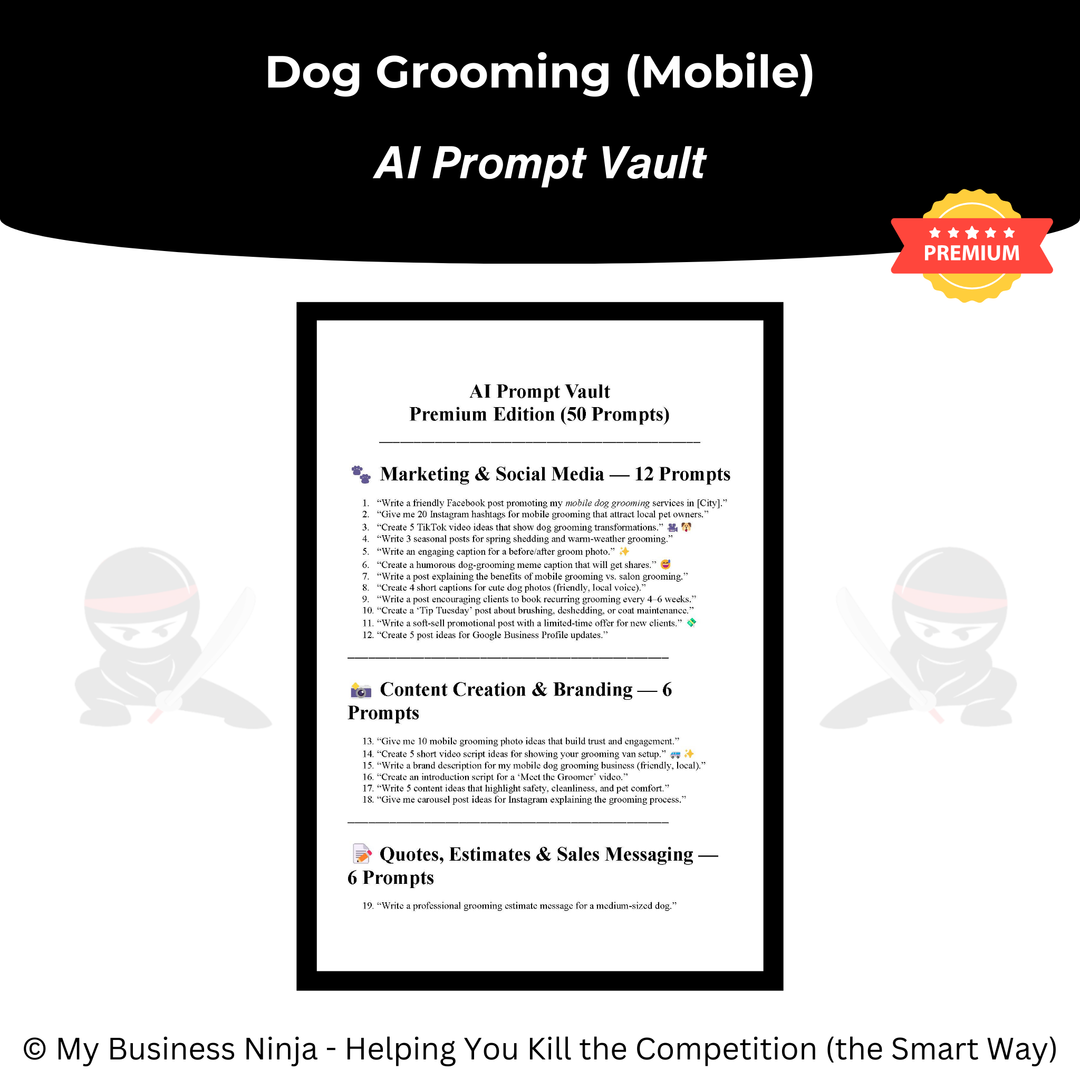 Whether you’re launching a new mobile dog grooming business or refining an existing operation, this collection provides the professional foundation and growth systems needed to compete, stand out, and grow the smart way. 🥷🐾
