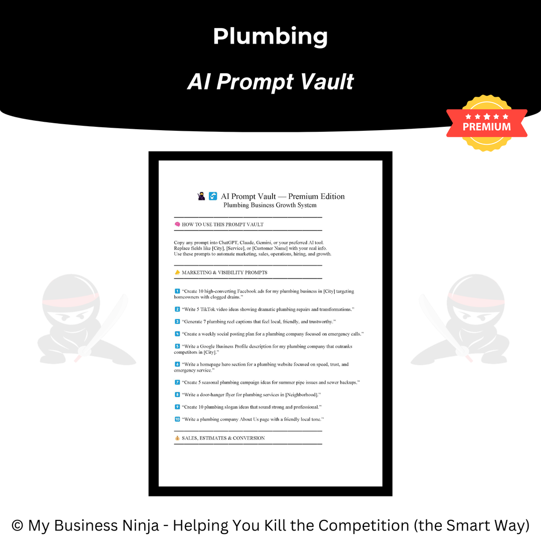 This collection includes a full suite of Ninja-crafted business tools designed specifically for plumbing professionals, including: