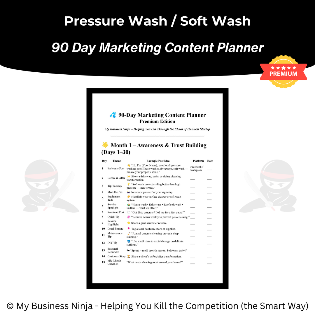 This collection includes a range of Ninja-crafted business tools designed specifically for pressure washing and soft washing contractors, including: