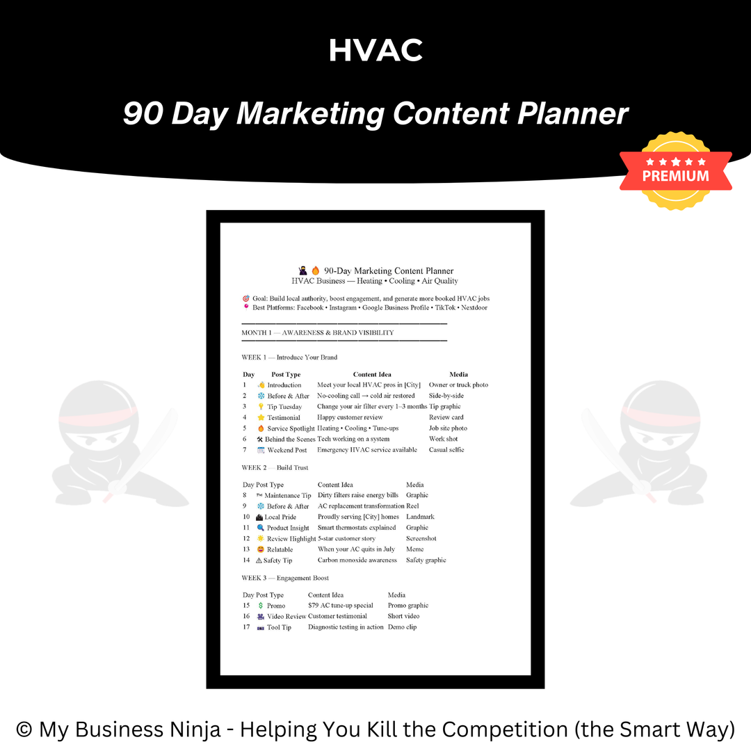 This page brings together every business tool available from My Business Ninja — across all industries, stages, and bundle levels. From foundational documents and planners to advanced marketing systems and strategic playbooks, these resources are designed to help business owners operate with clarity, confidence, and consistency.