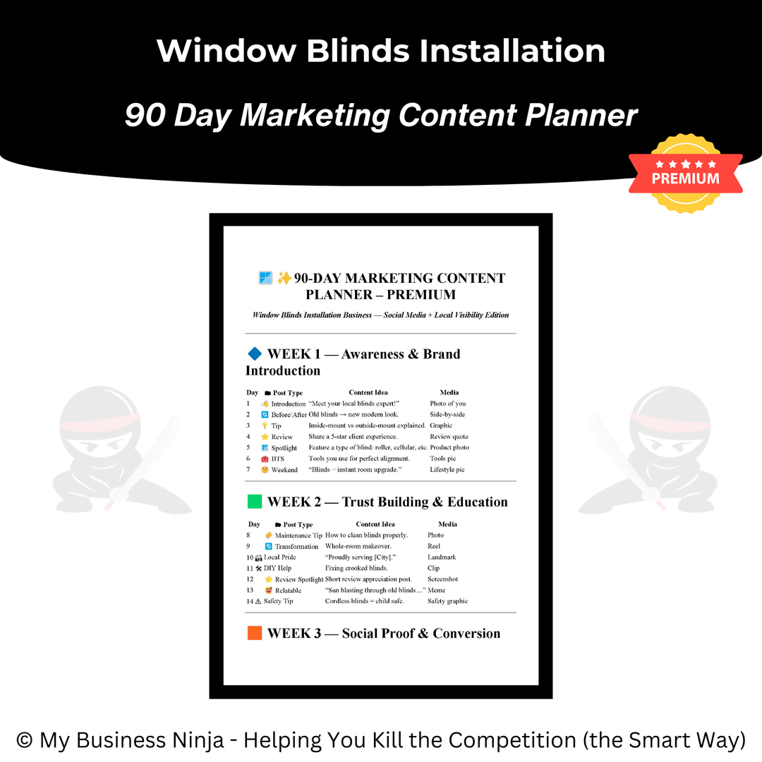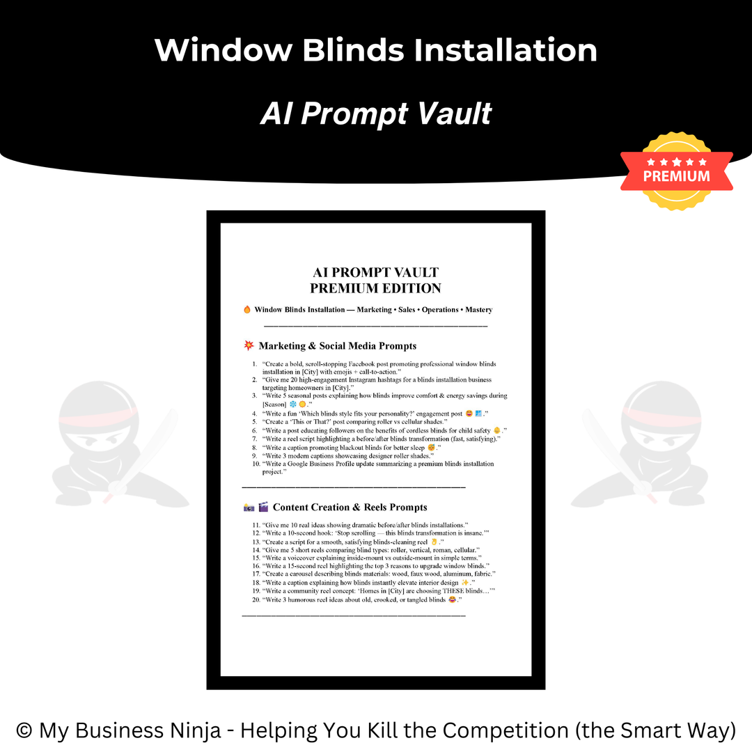 In addition to core operational and marketing tools, this collection also includes advanced playbooks and guides focused on branding, local positioning, competitive differentiation, sales confidence, and scalable growth strategies. Together, these resources help window blinds installation businesses appear more established, earn trust faster, close more jobs, and grow smoothly β even in crowded home service markets.