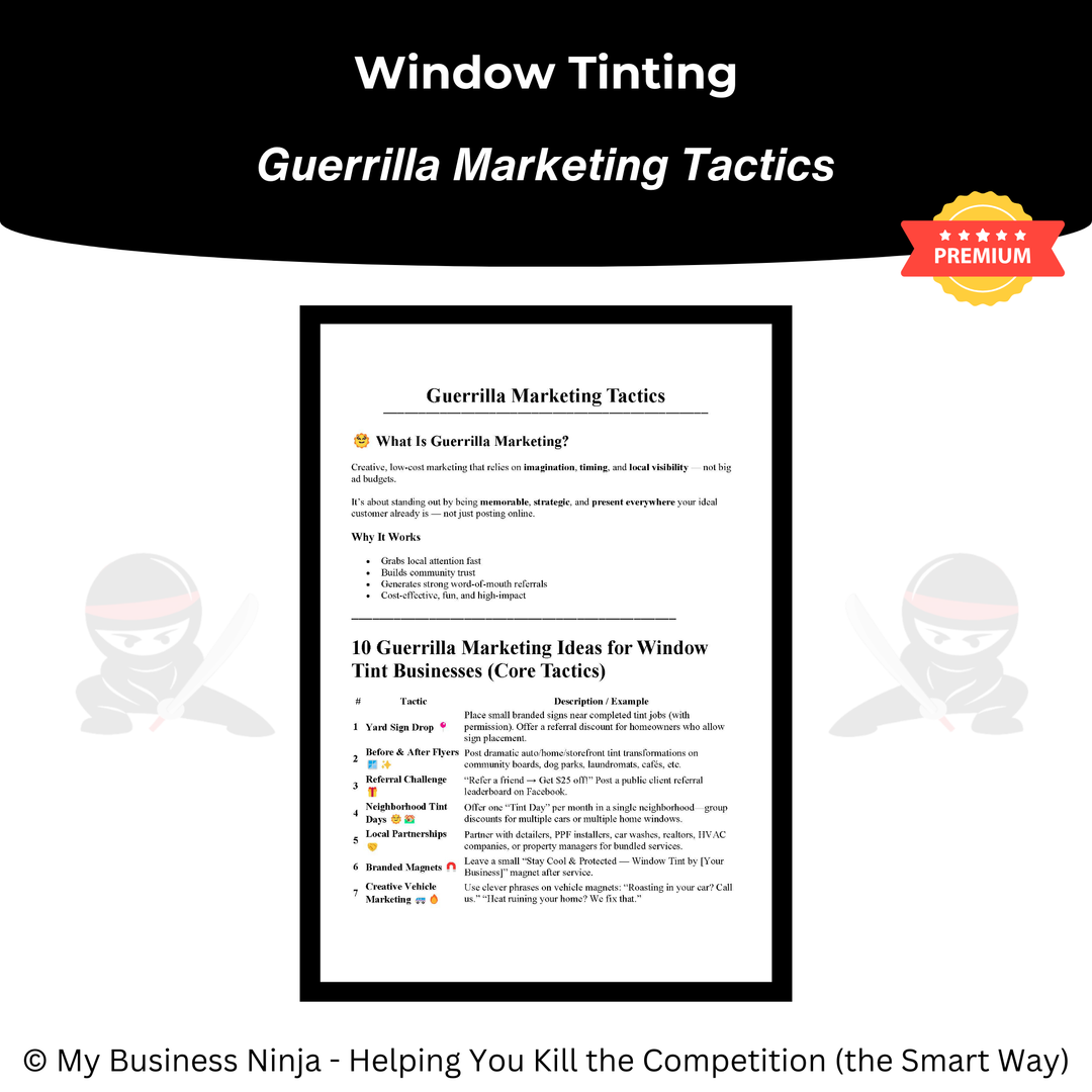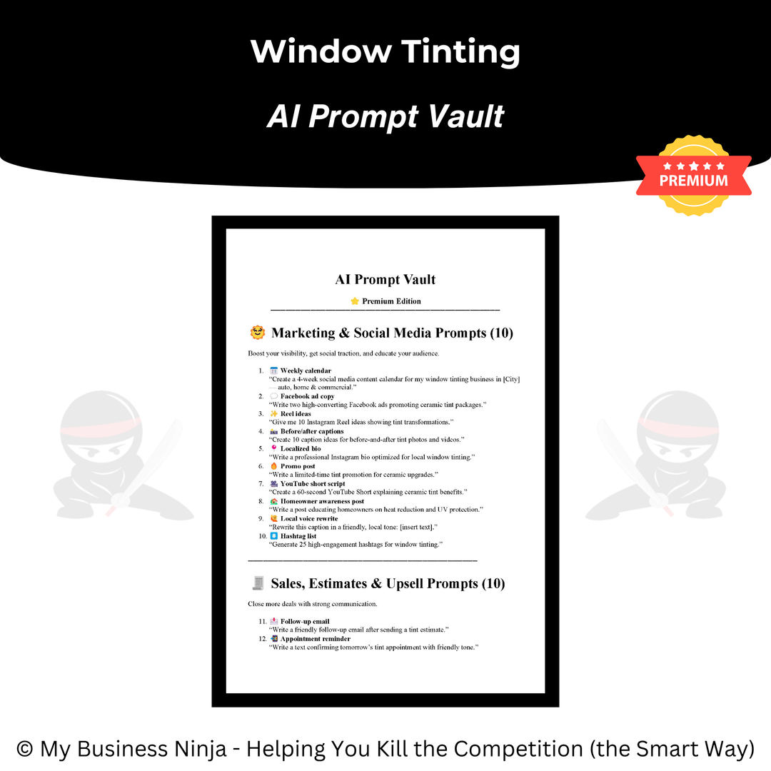 Whether you’re launching a new window tinting business or refining an existing operation, this toolkit provides the professional foundation and growth systems needed to compete, stand out, and grow the smart way. 🥷🪟